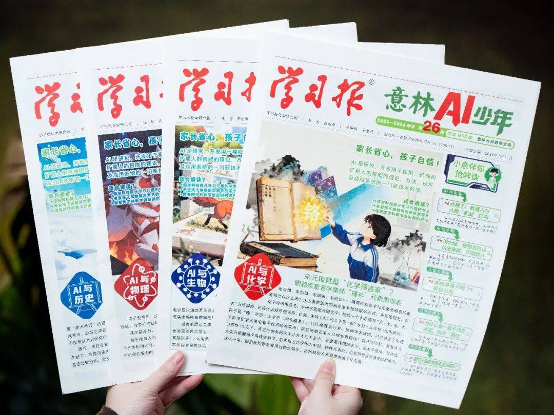 《我们的人工智能》《我们的脑科学》《几何里的奥秘》,双期漫画连载《几何里的奥秘》。让孩子正在成长的过程核心里有底,一份意林AI少年报=AI发蒙+活学讲义学问+堆集学科实题+跨学科思维+科学素养。别看它是一份。